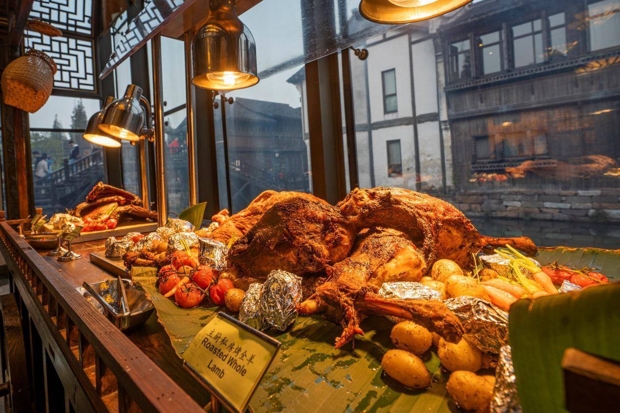 慢下来,去感受秋意,去尽情享受江南水乡的美景。枕水度假酒店此次国庆假期,为游客的旅途增加一份满满的仪式感,现推出应季美食——烤全羊自助餐。羊肉性甘、大热,有益气补虚、温中暖下、开胃健力之功效。在逐渐萧索的秋日,多吃羊肉对人体健康有益。而枕水度假酒店推出的烤全羊也是选用了乌镇当地的湖羊,湖羊肉鲜嫩脂肪少、香而不膻,驱寒保温强、营养含量高,是民间秋冬季节滋补的最佳食品